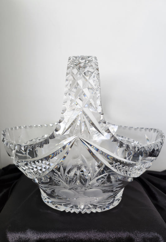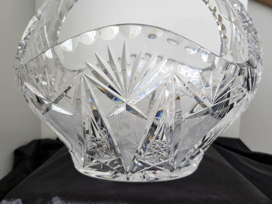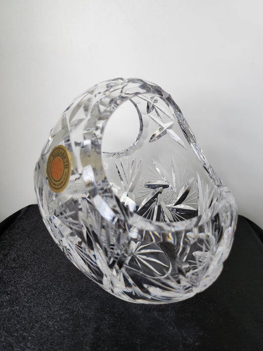 Vintage Diamond Cut Lead Crystal Tilted Basket for Sweets